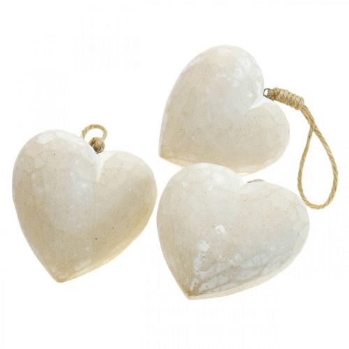 Fából készült szívdísz akasztó Díszszív függeszthető fehér 12cm 3 db