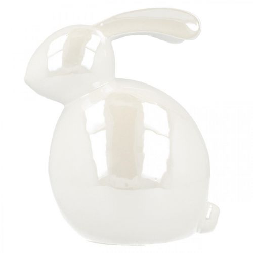 Kerámia nyuszi, húsvéti figura, tavaszi dekoráció, húsvéti nyuszi fehér, gyöngyház H17cm