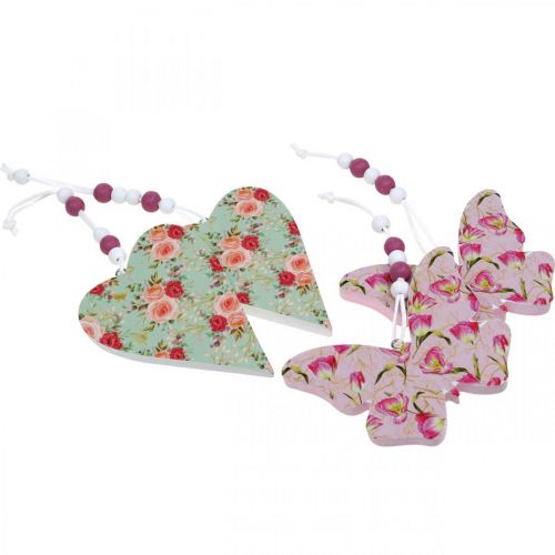 Termék neve: Medál virágmintával, szívvel és pillangóval, rugós dekoráció függesztéséhez H11,5/8,5cm 4db