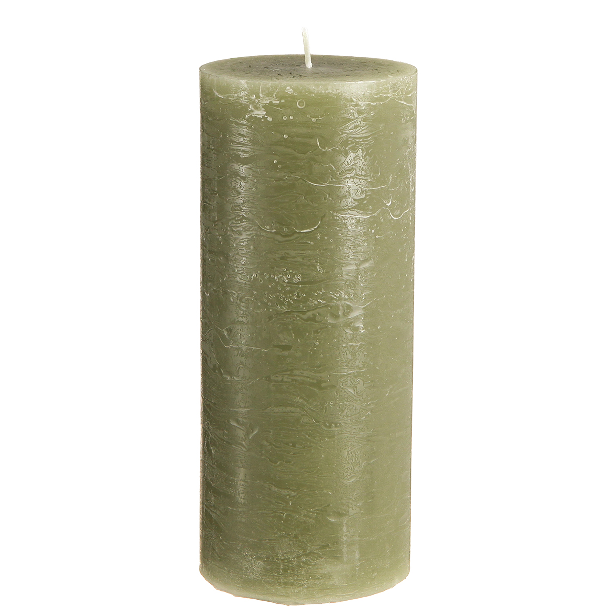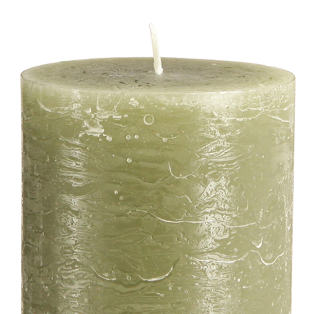 Az Ön új hangulatforrása: oszlopgyertyák olajzöld színben