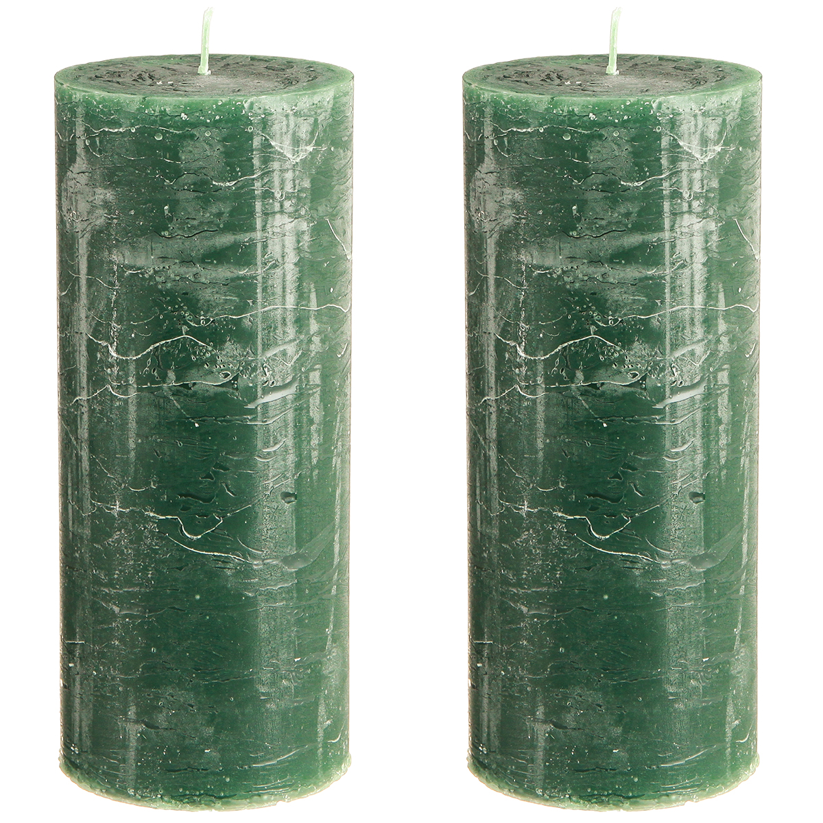 2 db-os oszlopgyertya-készlet, sötétzöld, 85x200 mm – Elegáns, tartós díszgyertyák hangulatos hangulatért