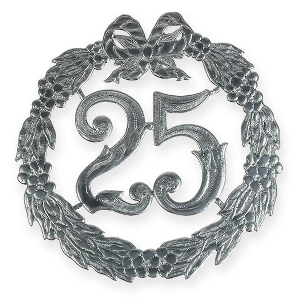 A számkoszorú különösen magas minőségben van megmunkálva, és dombornyomott kartonból készült: A koszorúban masnival ellátott szám az ezüst csillogásnak köszönhetően finom, elegáns akcentusokat is kölcsönöz, ami természetesen különösen jó ezüstlakodalmakban, de még egyéb ezüst évfordulókra, például cége fennállásának 25. évére.