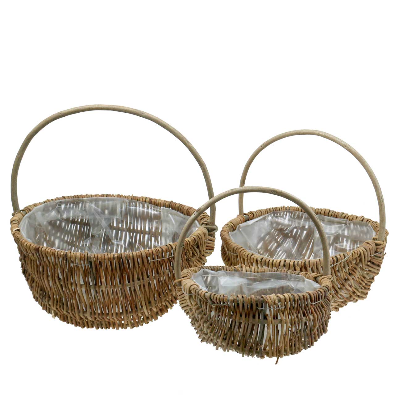 3 darabos fűzfa kosár szett, natúr színek, fogantyúkkal, vintage növénykosarak Ø32/28/22cm, díszkosár, ajándékkosár, húsvéti kosár