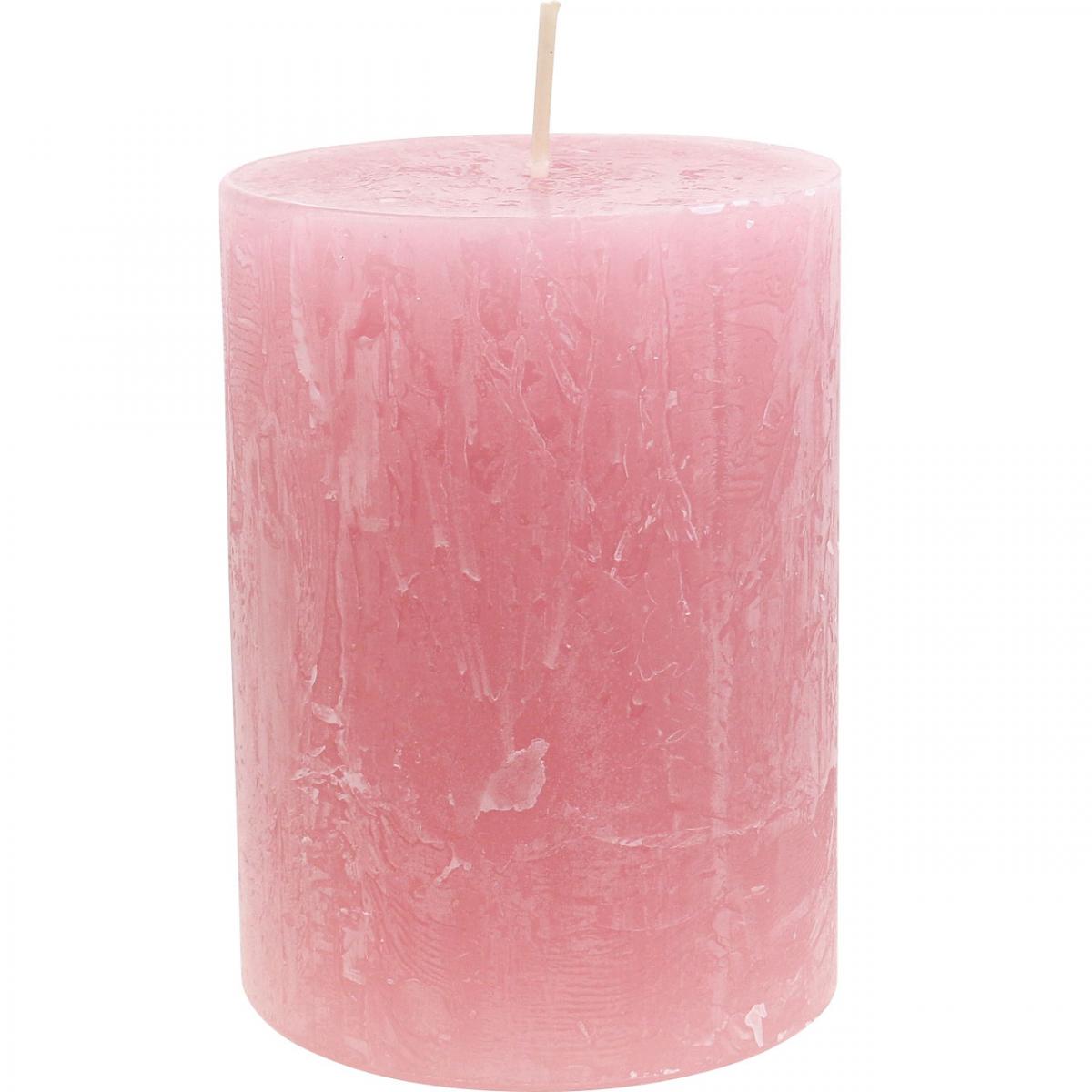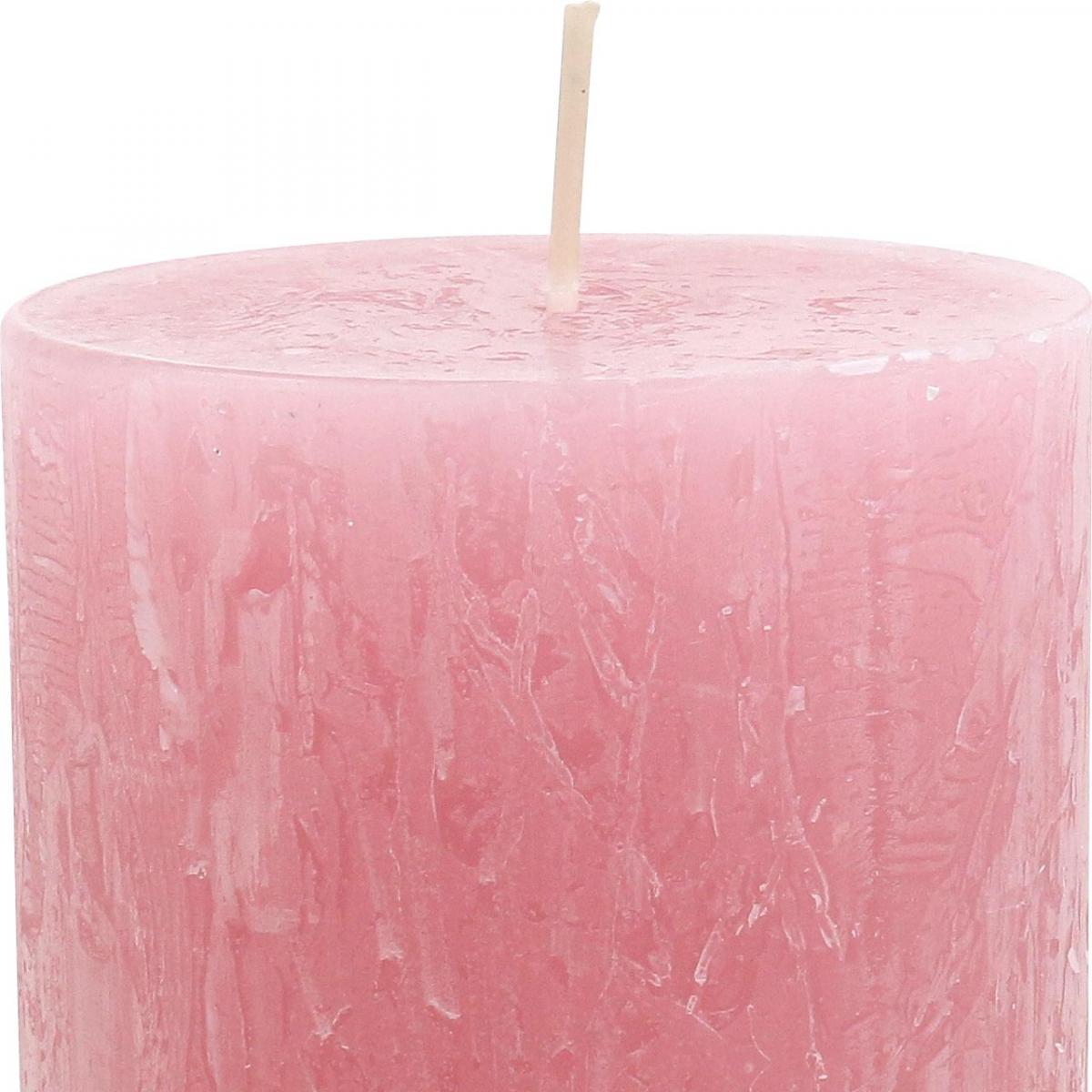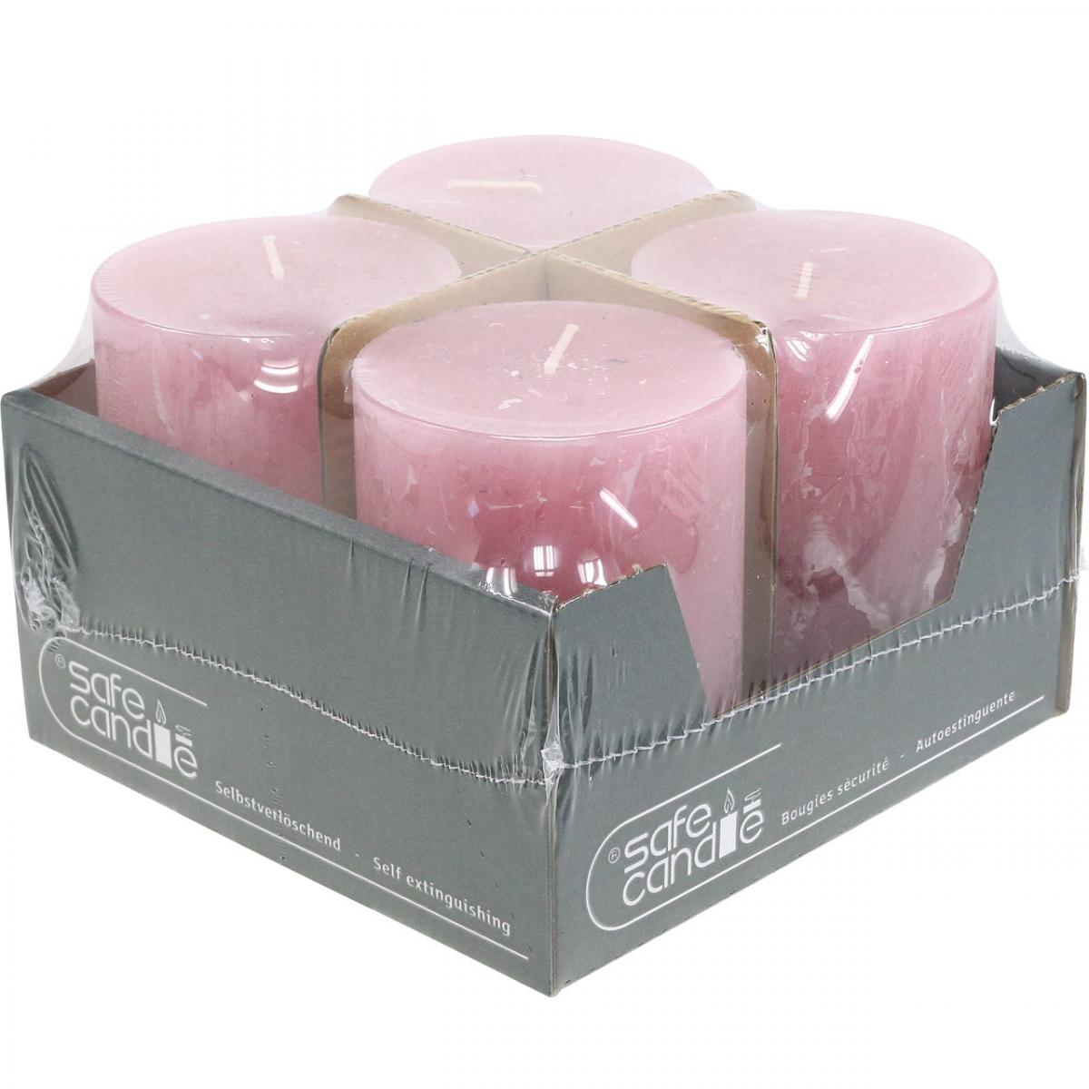 4 darabos rusztikus oszlopgyertya-készlet, antik rózsaszín, minőségi gyertyák, teljesen festett, 80x110 mm, stílusos dekoráció és hosszú égési idő