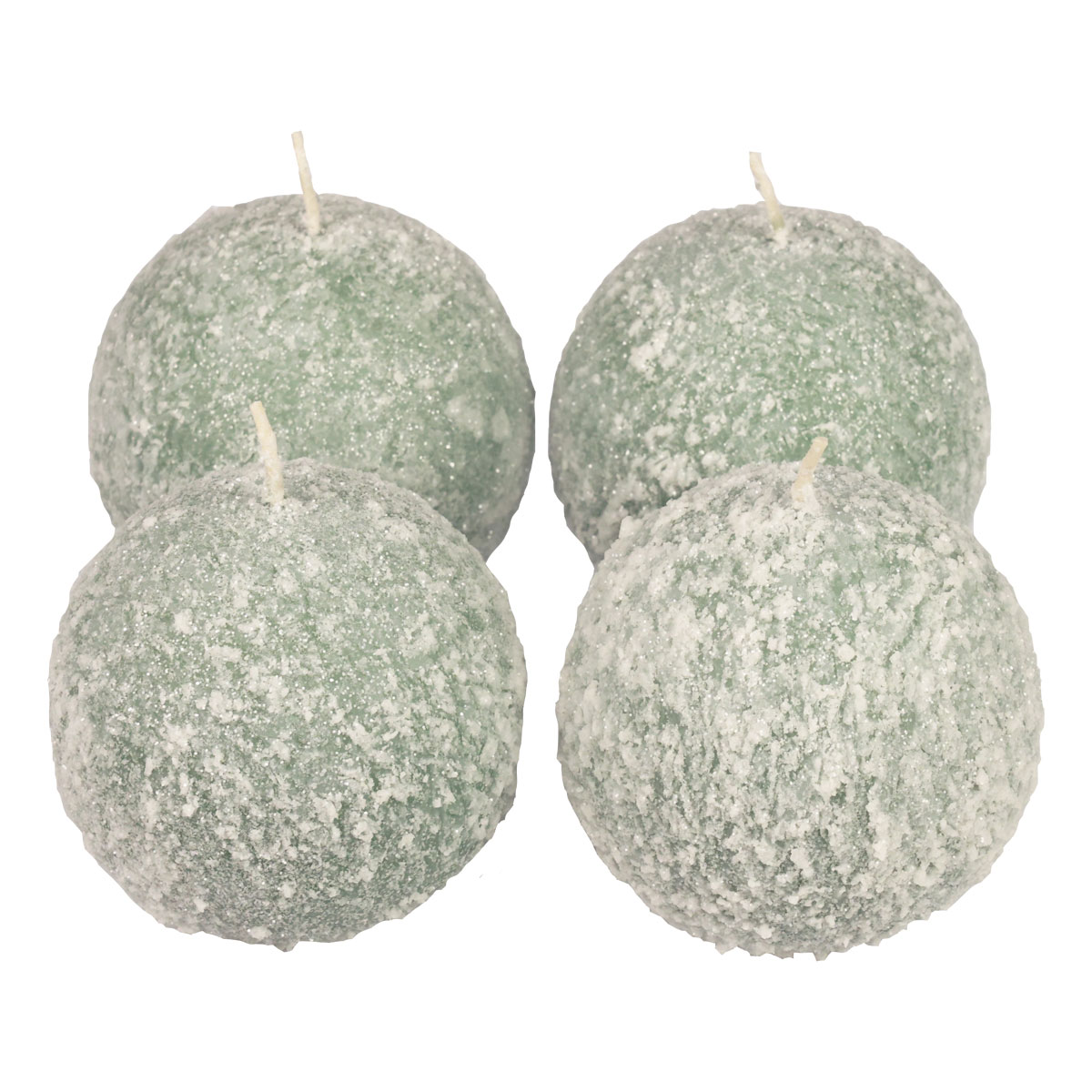 4 db-os zöld golyógyertya szett, 8 cm-es csillámos hógolyó karácsonyi dekorációs adventi gyertyák