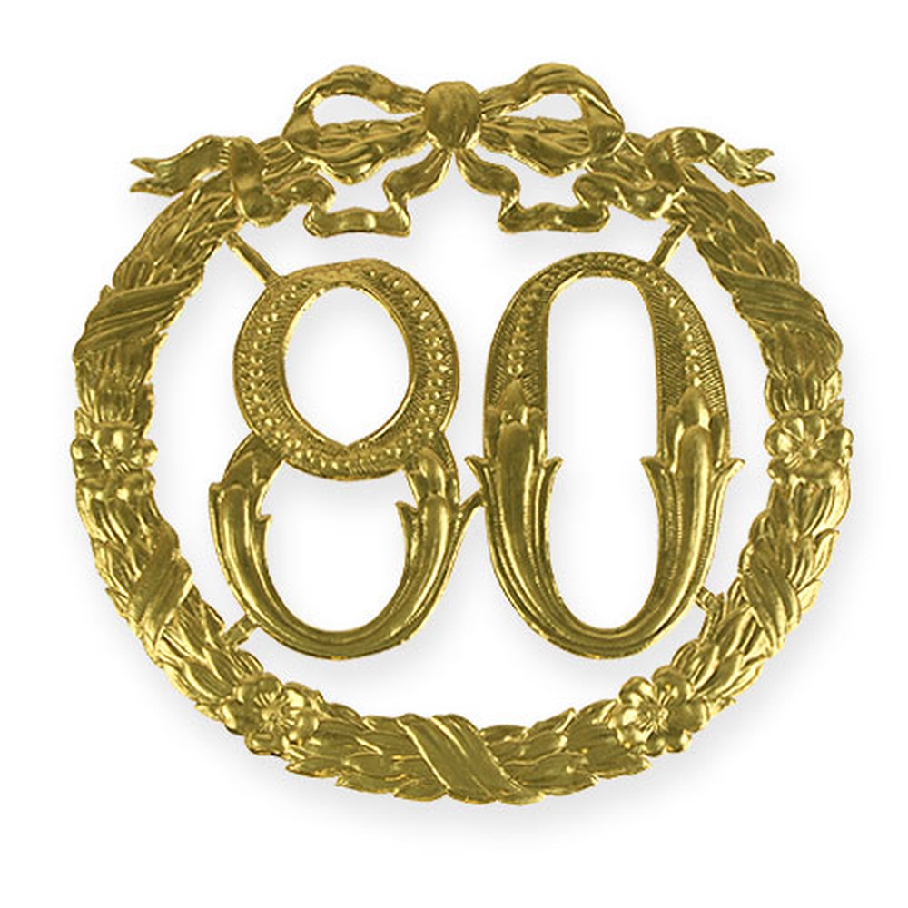 Az aranyszínű "80" évfordulós szám kiváló minőségű dombornyomott kartonból készült, amely a filigrán kialakítás ellenére nagyon robusztus. A számkoszorú körülbelül 24 centiméter átmérőjű. A fix számot egyszerűen használhatja ablak- vagy ajtódíszként egy klub évfordulójára vagy egy hasonló évfordulóra.