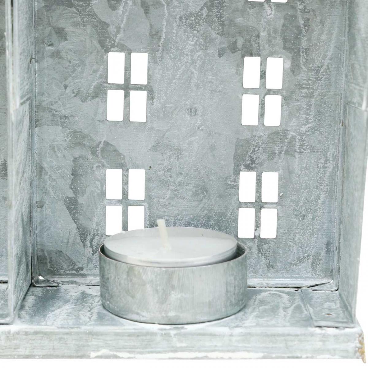 Termék neve: Ablak dekoráció karácsonyi, lámpás, dioráma ház sorozat, fém dekoráció ezüst shabby chic L20cm H20cm