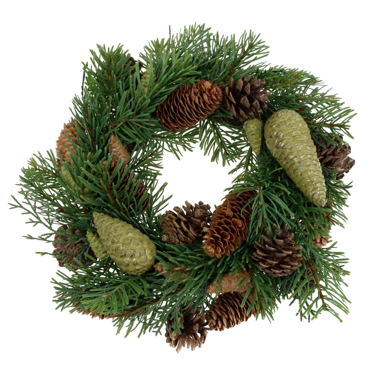 Adventi koszorú, fenyőkoszorú természetes és műfenyőtobozokkal, zöld ajtókoszorú Ø30cm, karácsonyi dekoráció