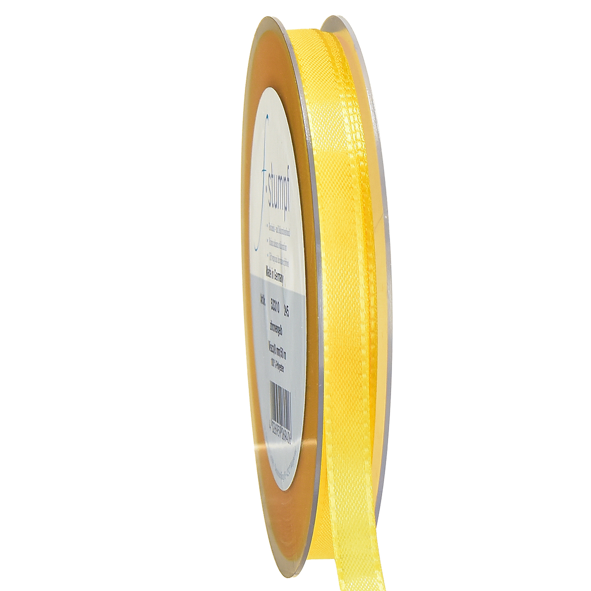 A sárga ajándék- és díszszalag körülbelül 50 méter hosszú és körülbelül 10 milliméter széles. 100% poliamidból készült, és lapos műanyag orsón van.