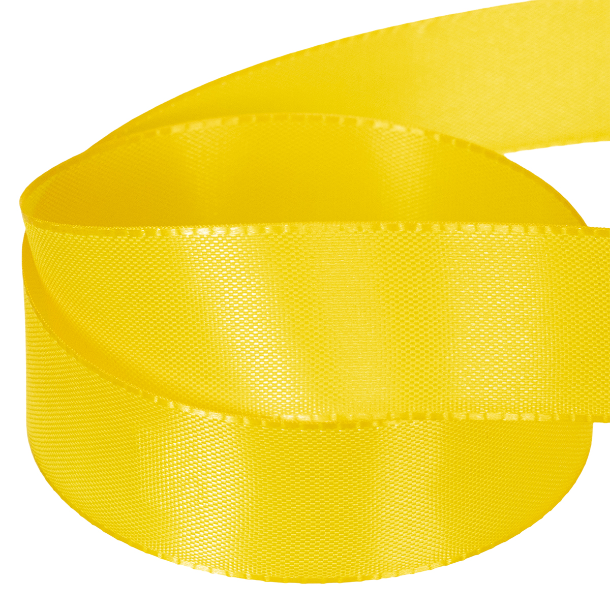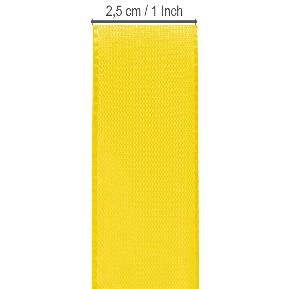 A sárga színű ajándék- és díszszalag körülbelül 25 milliméter széles és körülbelül 50 méter hosszú.