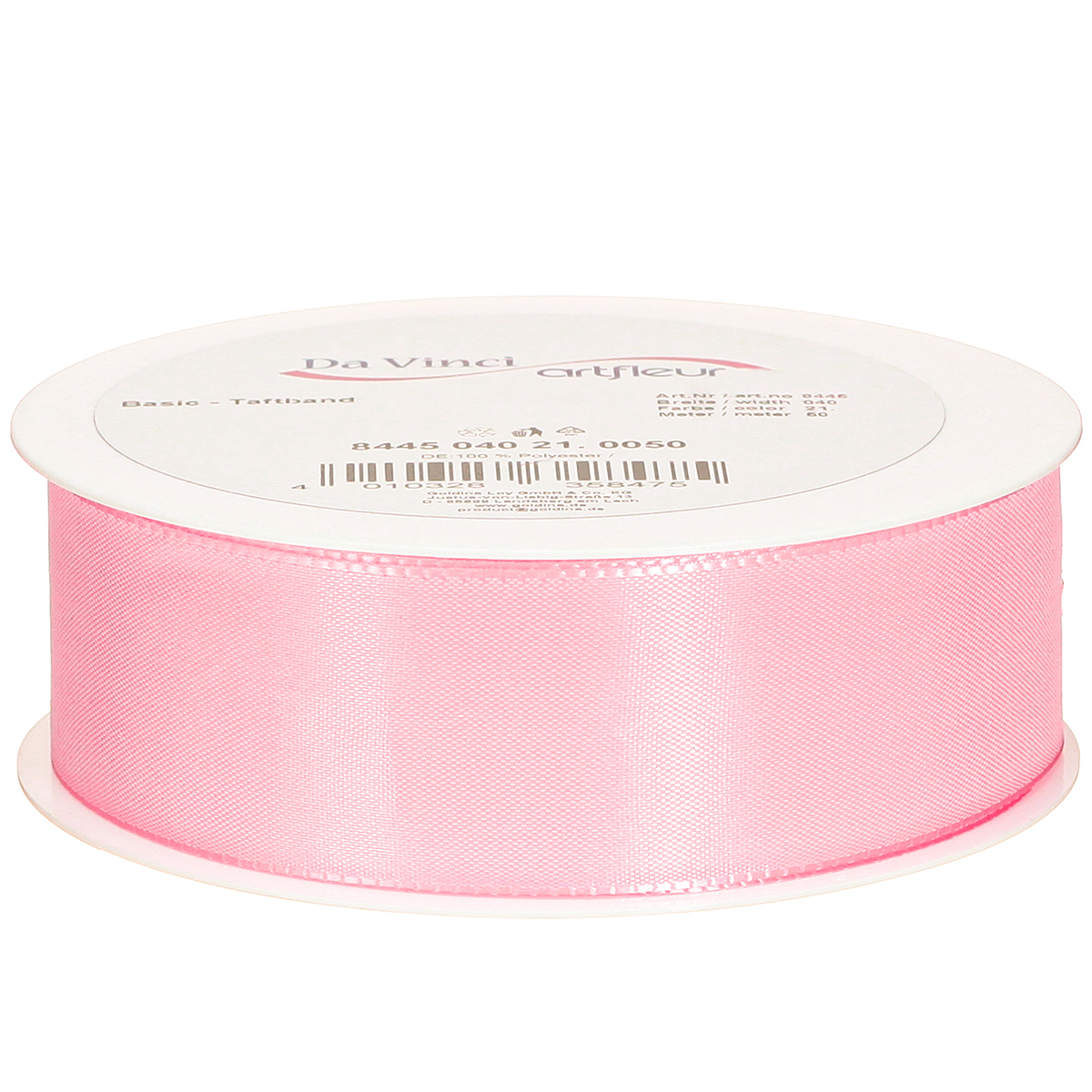 A halványrózsaszín ajándék és dekorációs szalag praktikus műanyag tekercsre van feltekerve, amely könnyen feltehető az adagolóra. A szalag hossza hozzávetőleg 50 méter, szélessége pedig körülbelül 40 milliméter.