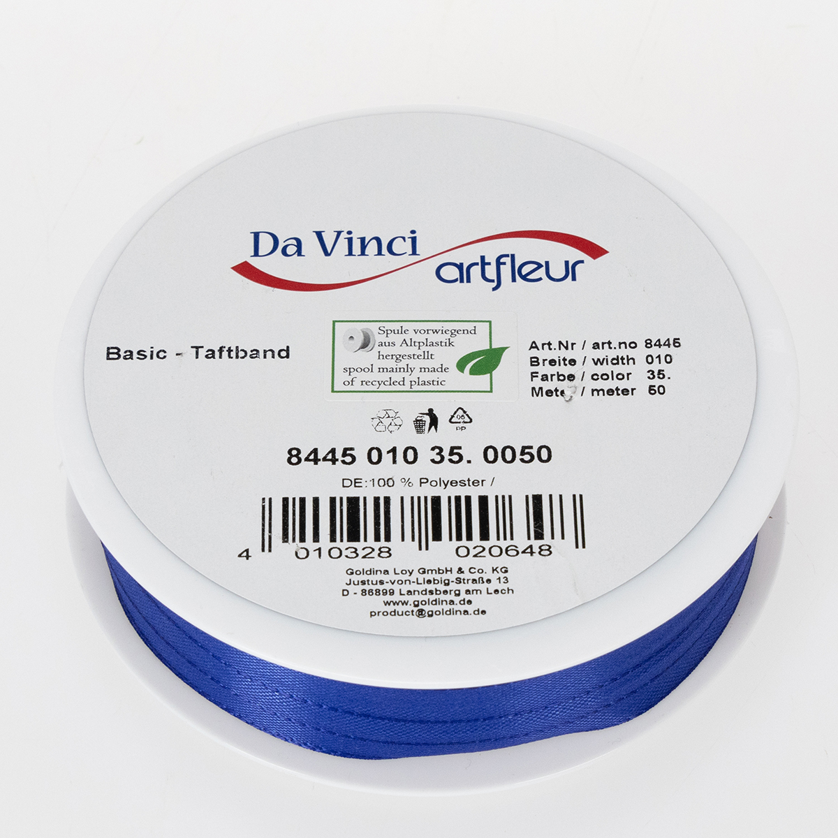 A sötétkék ajándék- és dekorációs szalag 10 milliméter széles és körülbelül 50 méter hosszú.