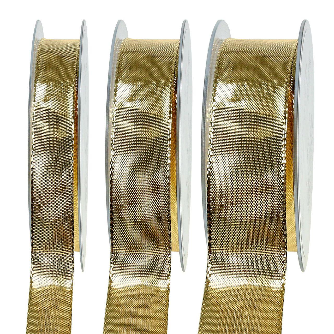 Legyen szó karácsonykor, születésnapi buli, aranylakodalom vagy házasságkötés alkalmából: Ezzel a drótszegélyű aranyszínű ajándékszalaggal, amely a jobb felső fülön keresztül különböző szélességben választható, kicsi és nagy ajándék szerezd be azt a bizonyos valamit! A fényes szalagból felkötözött masnik a fémhuzallal megerősített éleknek köszönhetően sokkal méretstabilabbak, mint bármely közönséges szaténszalagnál, így különféle dekorációs munkákhoz is felhasználhatók.
