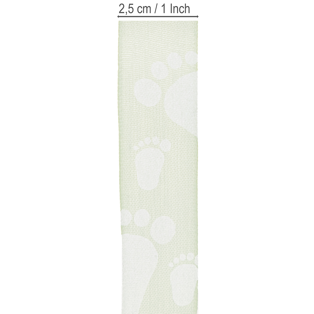 Ajándék szalag baba láb dekoráció keresztelő zöld 25mm 16m