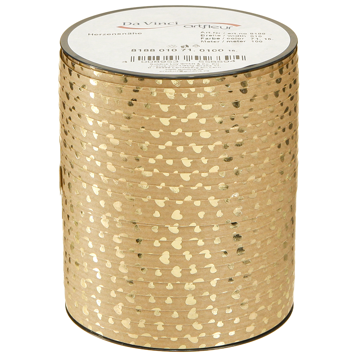 Termék neve: Ajándék szalag curling szalag szívecskékkel aranybarna 10mm 100m