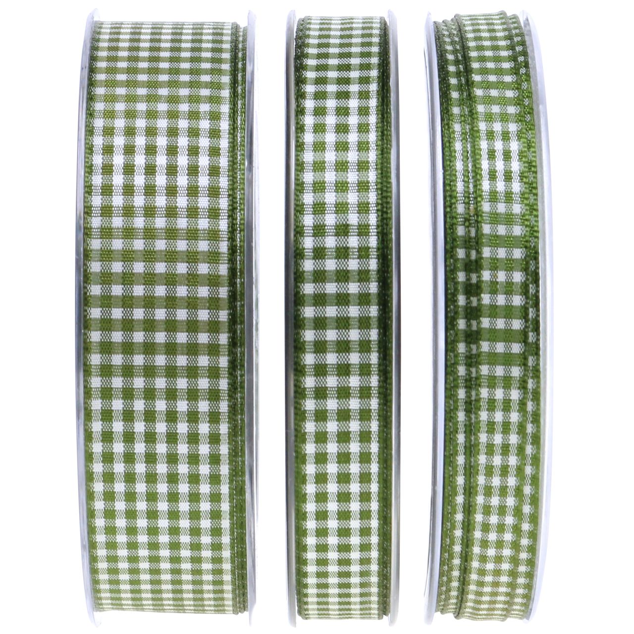 A kockás mintás zöld ajándékszalag a következő szélességekben kapható: 8 milliméter körüli, 15 milliméteres és 25 milliméteres szélességben. Mindegyik sáv körülbelül 20 méter hosszú. Viszkóz és poliészter keverékéből áll. Praktikus műanyag tekercsben szállítjuk.