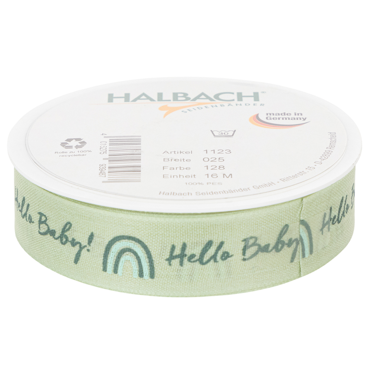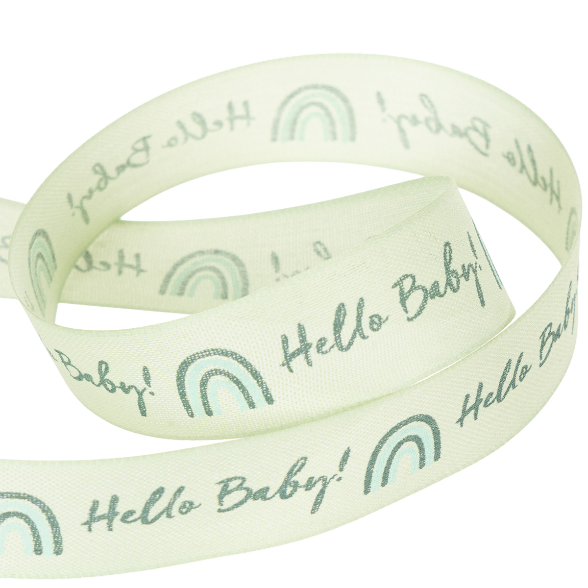 Termék neve: Ajándék szalag Hello Baby díszszalag zöld 25mm 16m