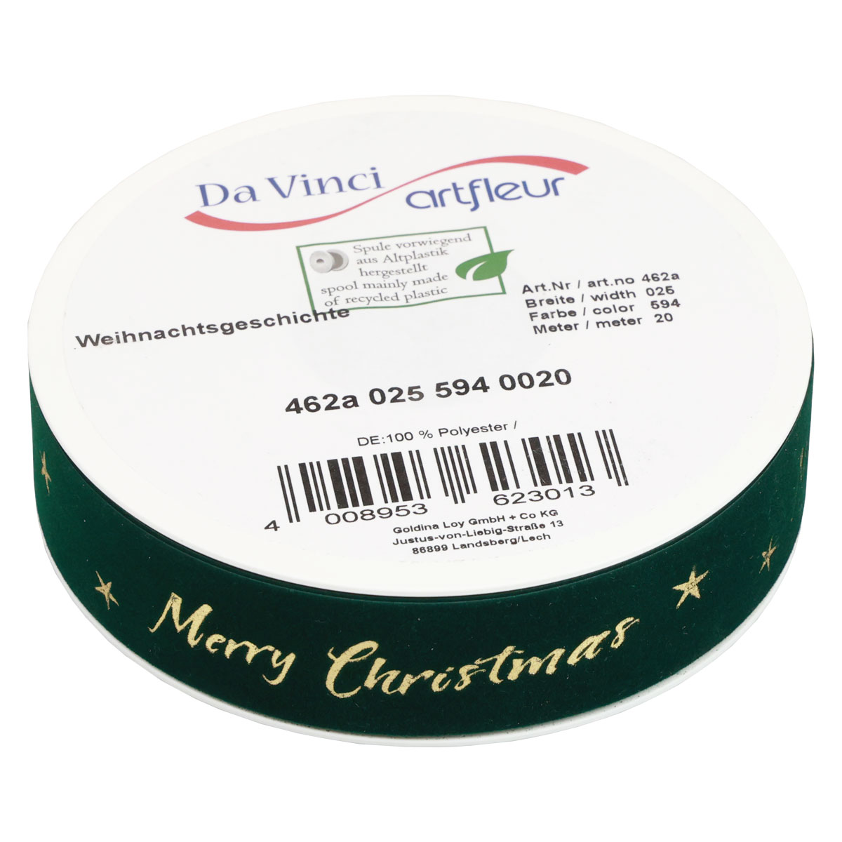 Ajándék szalag, karácsonyi szalag, bársony szalag Green Merry Christmas 25mm 20m