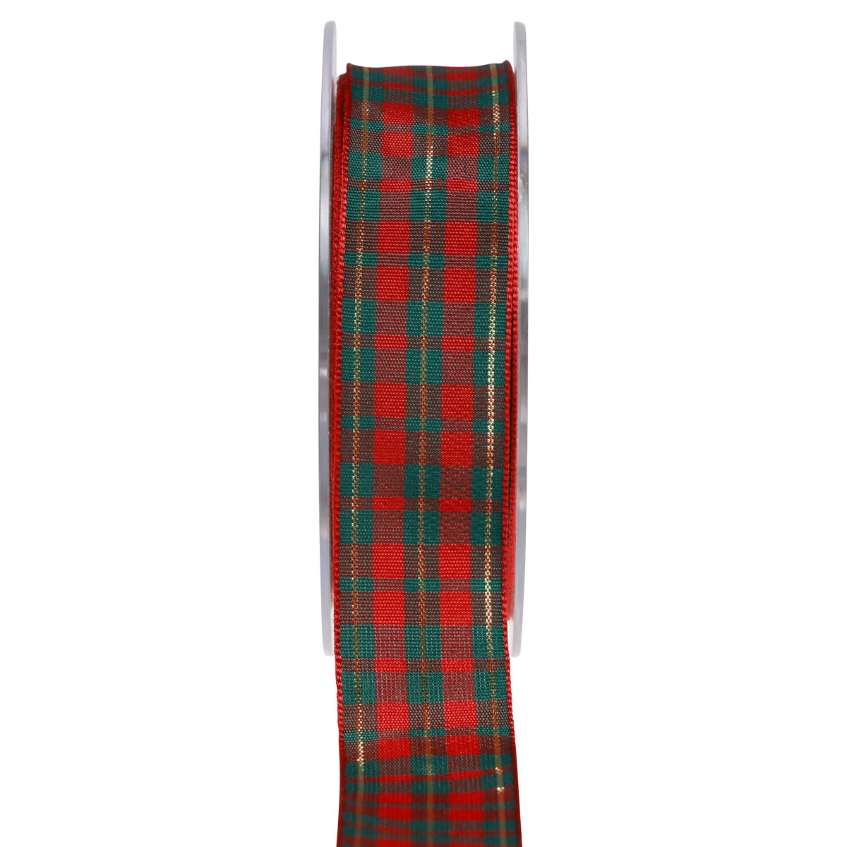Ajándék szalag kockás szövet szalag piros zöld skót 25mm 20m