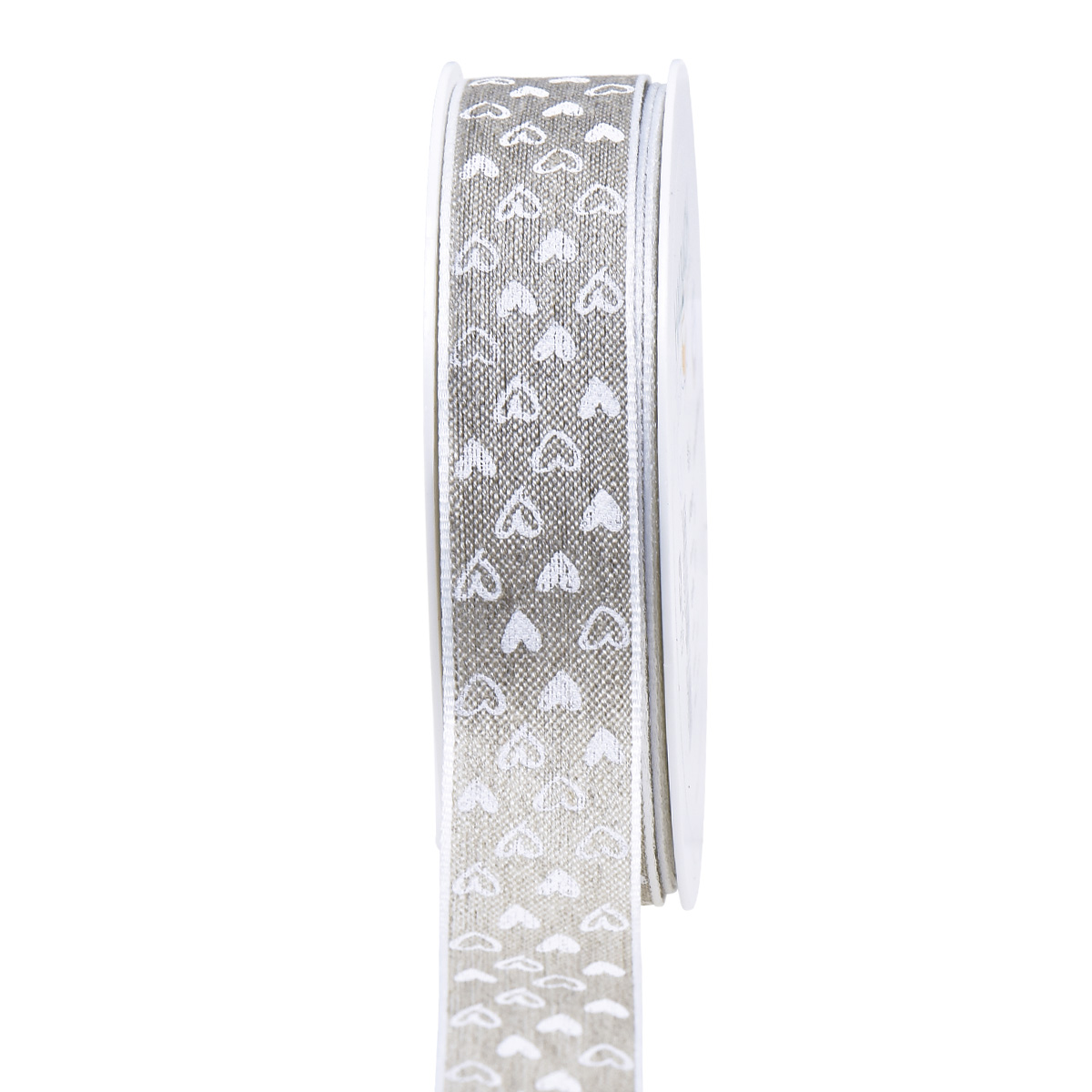 Ajándék szalag szívek dekoratív szalag bézs 25mm 15m