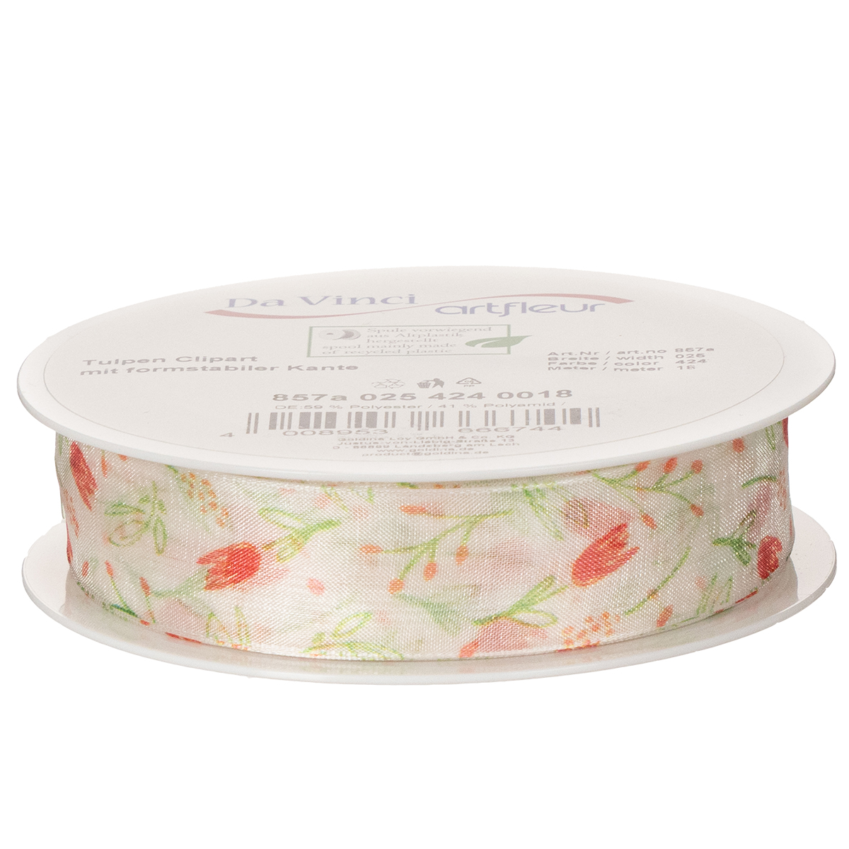 Ez az ajándékszalag romantikus tulipán mintájával és kiváló anyagminőségével lenyűgöző. 18 méter hosszú és 2,5 cm széles szalagjával rengeteg szalag áll rendelkezésre, hogy szabadjára engedhesd kreativitásodat. Akár ajándékcsomagoláshoz, akár vázák díszes masnijaként, akár asztaldíszként használod, a tulipán motívum gyönyörűen harmonizál a finom színváltozatokkal és a kiváló minőségű poliészter textúrával. Különösen harmonikus és vonzó megjelenést kölcsönöz, ha tavaszi virágokkal, például nárciszokkal vagy tulipánokkal kombinálod.