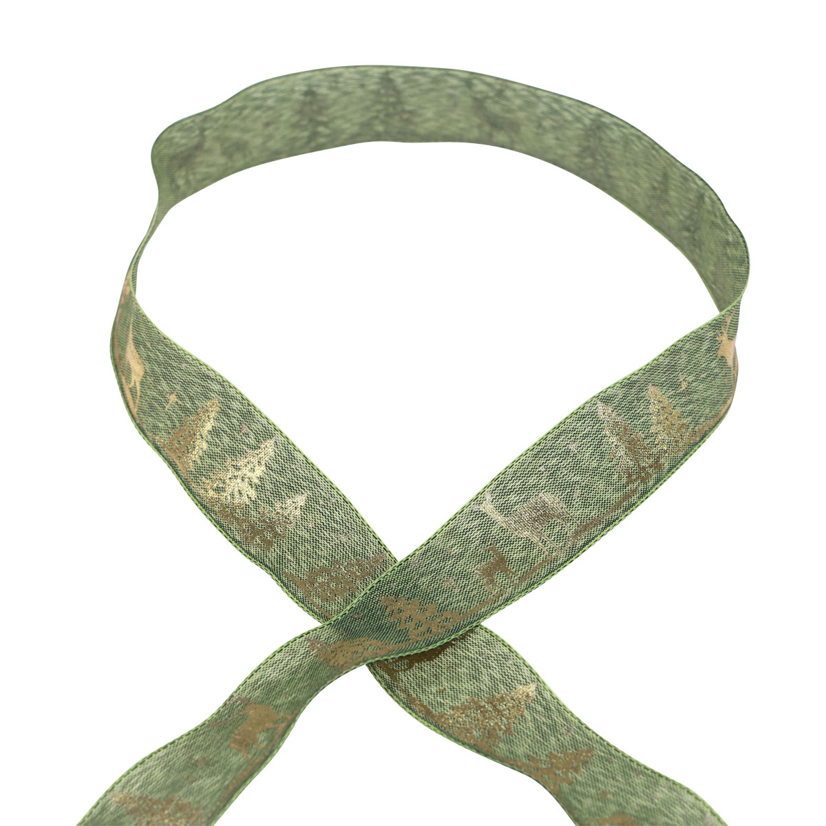 Ajándék szalag zöld arany karácsonyi szalag szarvas 25mm 15m
