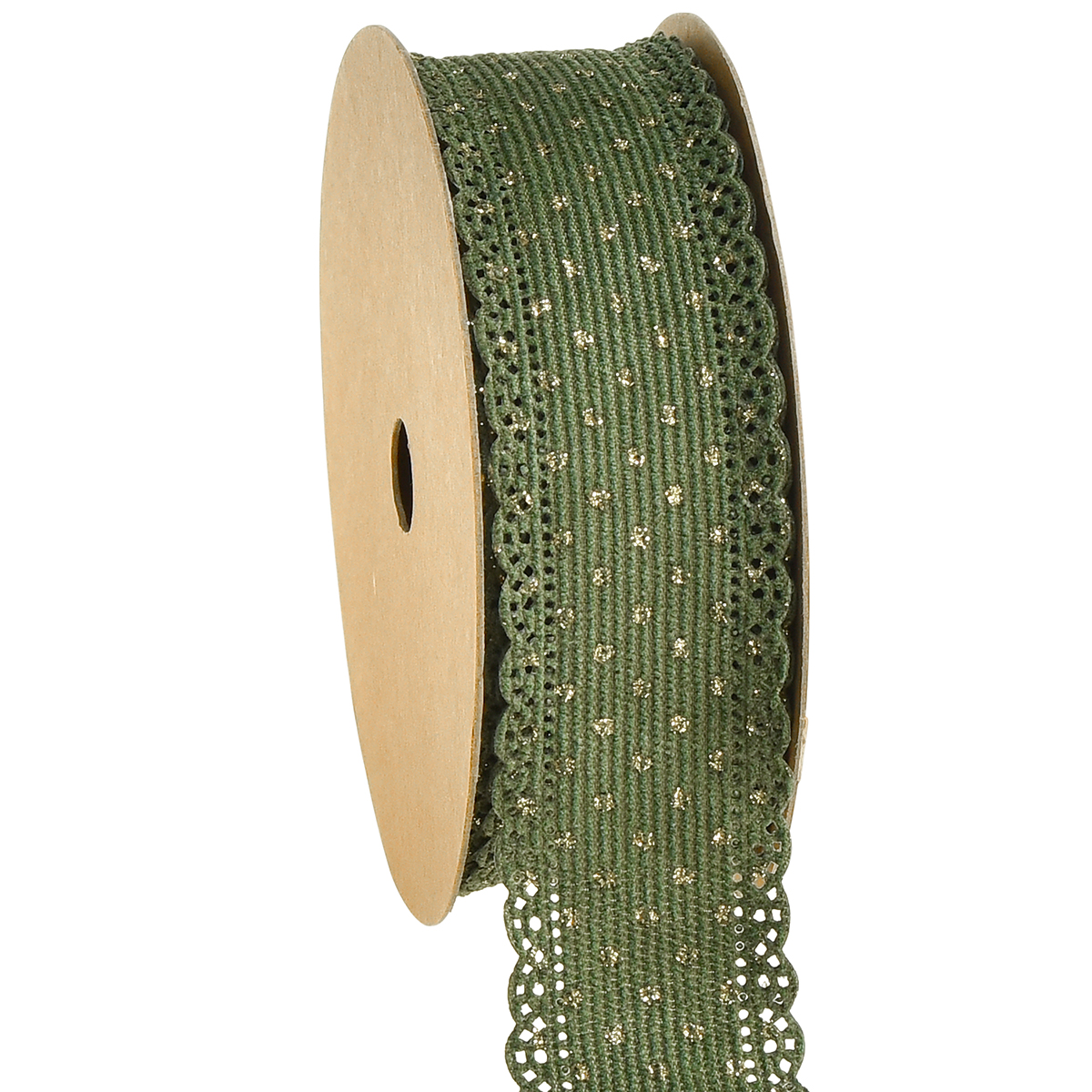 Emelje ki ajándékait, vagy finomítsa dekorációit gyönyörű dekoratív szalagunkkal: a zöld szalag arany pöttyökkel és csipkével. Kiemelés minden ajándékcsomagolásban és minden dekoratív alkotásban!