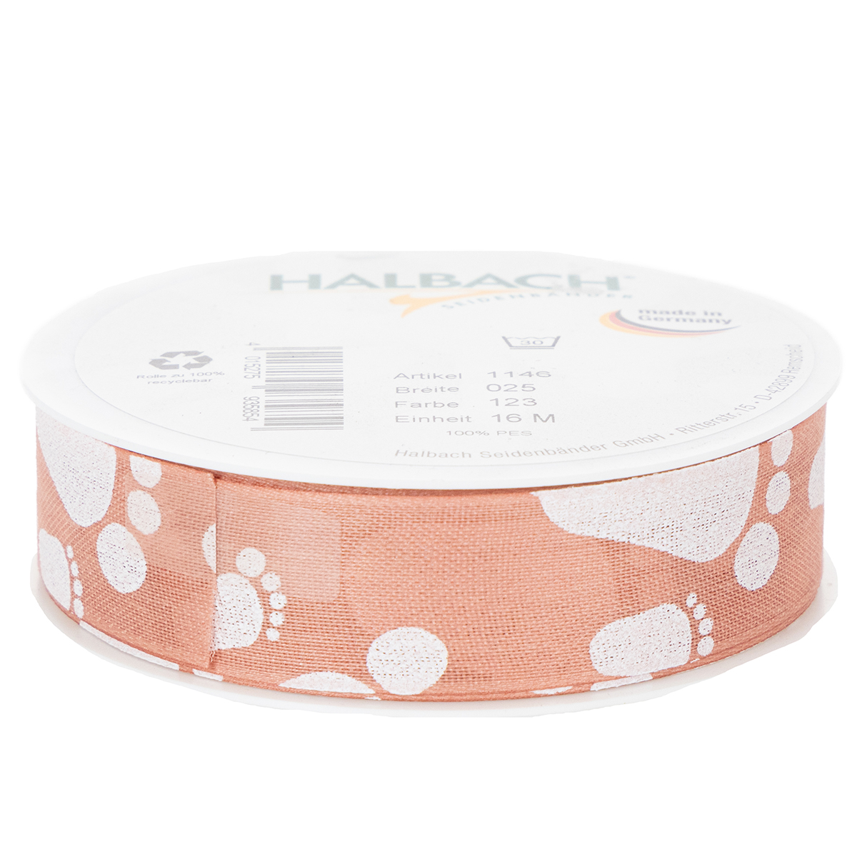 Ajándékszalag babalábra, keresztelői dekoráció, rózsaszín szalag, 25mm, 16m