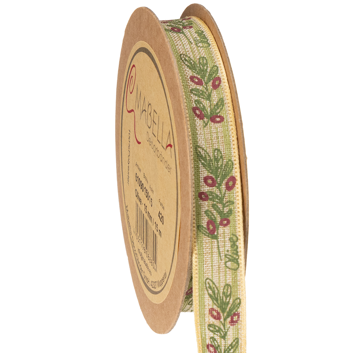Ajándékszalag olajág elegáns ágakkal és olajbogyókkal 1,5 cm 15 m