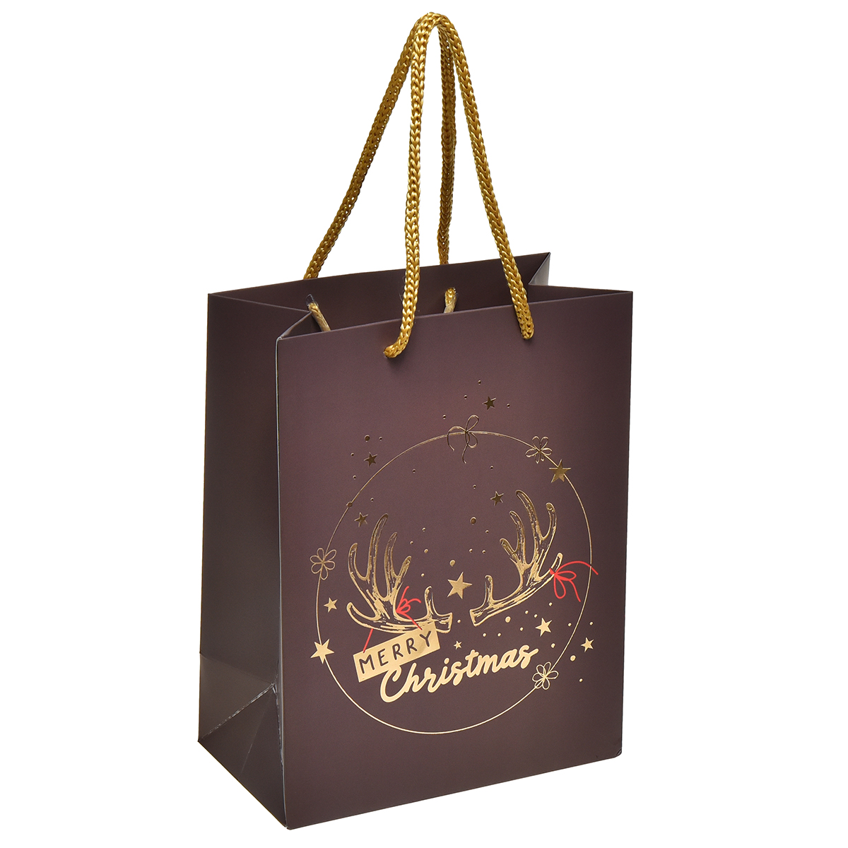 Termék neve: Ajándéktáska Karácsonyi agancs barna/arany 18x10x23cm 2db