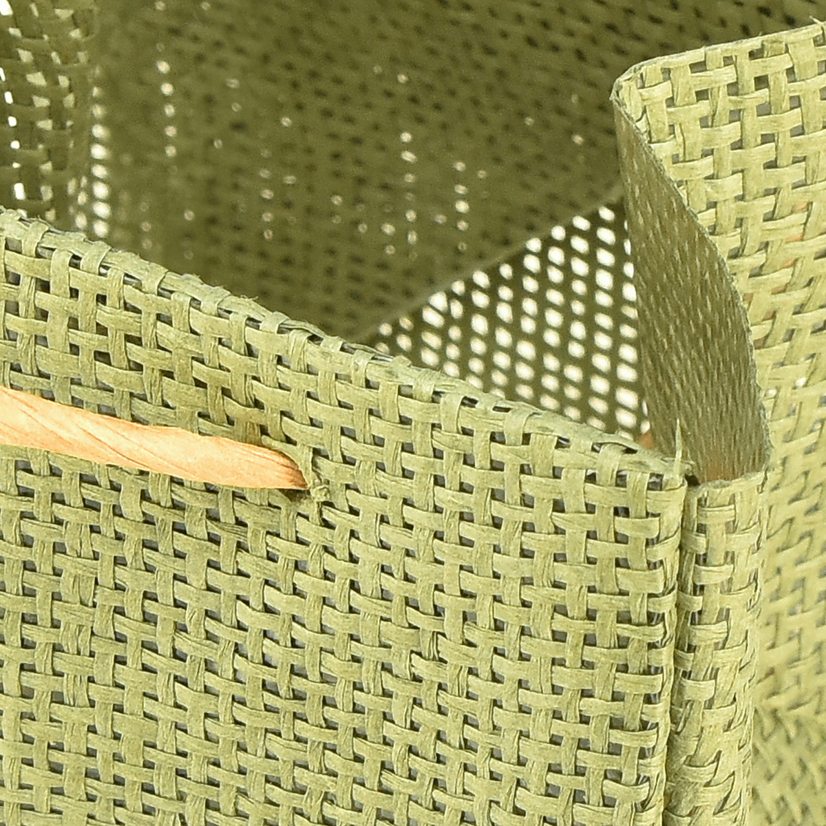 A bájos szőtt dizájnnal ellátott zöld papírból készült ajándéktasakok nemcsak vizuálisan vonzzák a szemet, hanem praktikus, zsinóros megjelenésű fogantyúkkal is rendelkeznek. Erős papírból készülnek, és belül fóliázottak, ami extra erőt ad nekik. A táskák a tökéletes 12x12 cm-es méretűek apró ajándékok, esküvői ajándékok vagy születésnapi ajándékok stílusos csomagolásához.