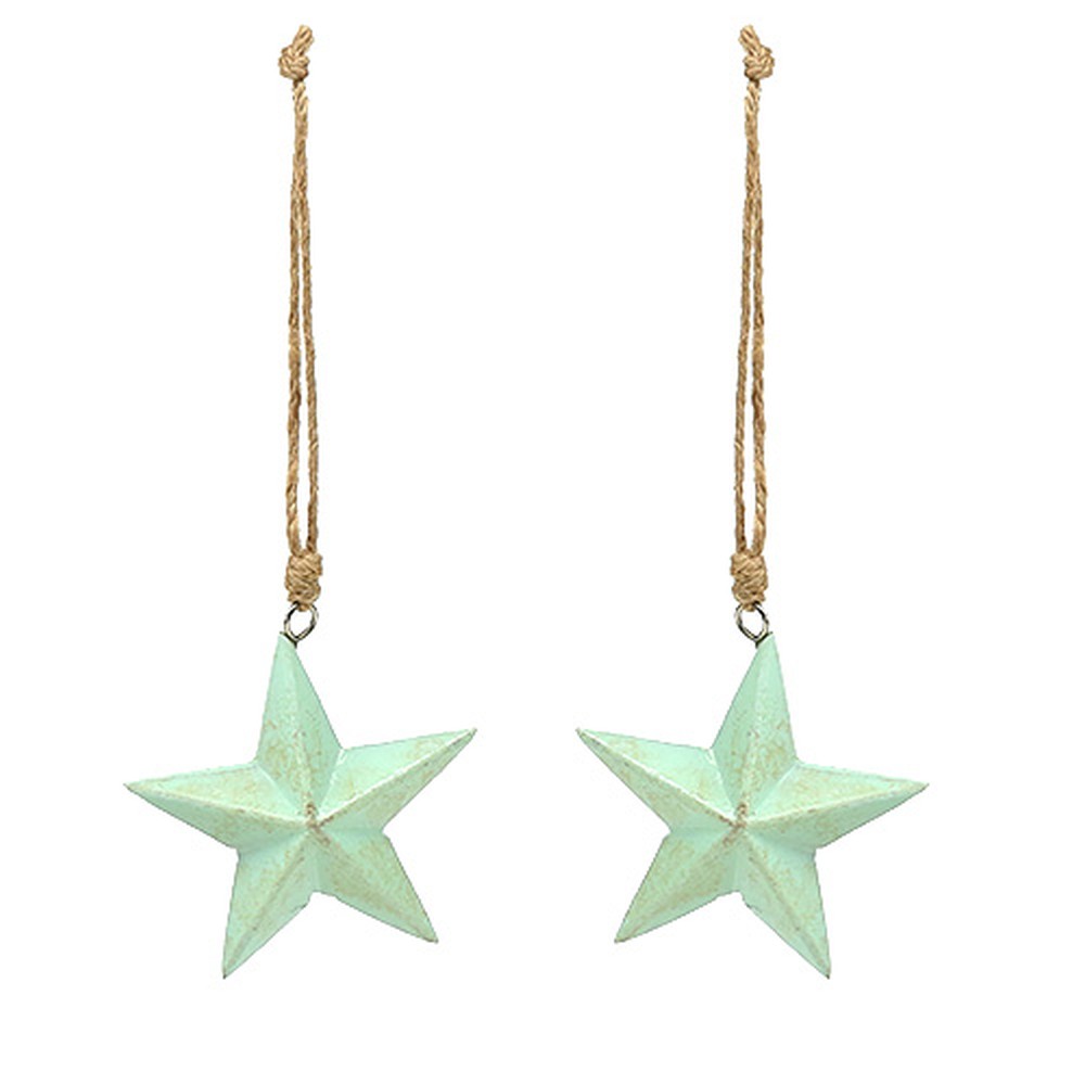 Akasztható fa csillagok világoszöld 7,5cm 4db