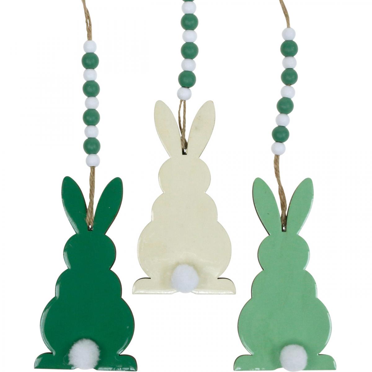 Termék neve: Akasztható húsvéti nyuszik, tavaszi dekoráció, medál, dekoratív nyuszik zöld, fehér 3 db