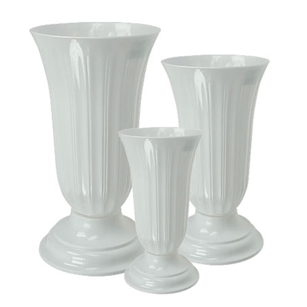 A fehér Lilia váza tökéletes beltéri használatra, csokrok bemutatására a virágboltban vagy a piacon. A lábfej levehető és könnyen tisztítható. A gyönyörűen formázott fehér Lilia váza törhetetlen műanyagból készült, és ideális a virágüzletek, kertészeti központok és virágüzletek friss virágaihoz. A széles alapnak köszönhetően a váza nagyon stabil és nem borul fel. A váza ideális padlóvázaként is otthoni használatra. A váza időjárásálló műanyagból készült. A dekoratív váza nyáron ellenáll az UV-sugaraknak, télen a fagynak.