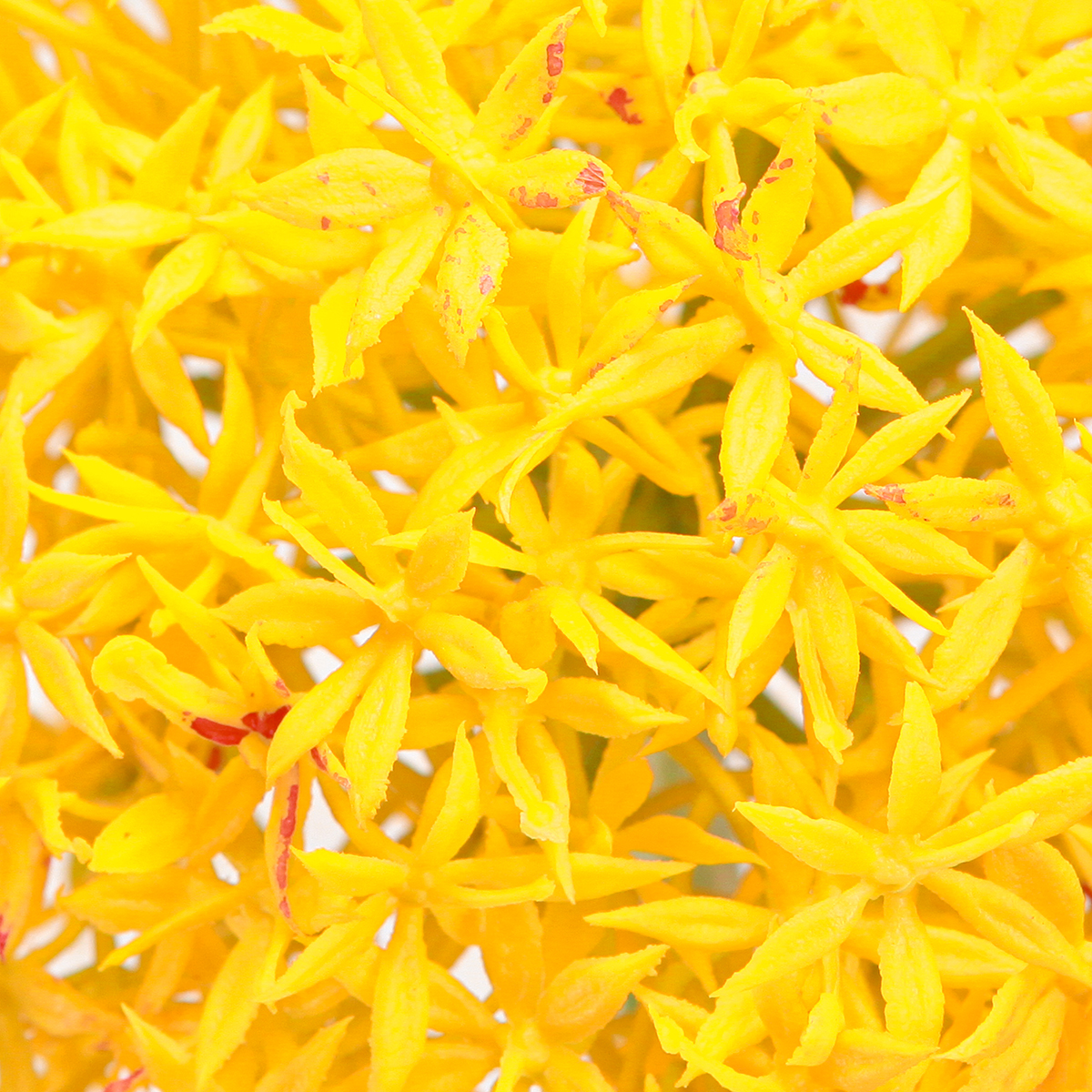 Élénk sárga mesterséges alliumunk tökéletes fénypontja dekorációjának. Körülbelül 80 cm-es hosszával és számtalan csillag alakú sziromból álló, részletgazdag, kerek ernyővel ez az elrendezés nem csak megjelenésével, hanem hosszú élettartamával is gyönyörködtet. Akár a nappaliban, akár a bejáratban, akár egy kerti parti fénypontjaként – az élénksárga virág garantáltan felkelti mindenki figyelmét. Az Allium belülről fémmaggal megerősített, kívül zöld műanyaggal borított fogantyúval készül. Az időtlen kialakítás lehetővé teszi a könnyű beilleszthetőséget a legkülönfélébb lakberendezési stílusokba, mint például a Scandi vagy a modern. Ezek a művészi virágok színt, üdeséget és nyár illatát hozzák mindennapjaiba.