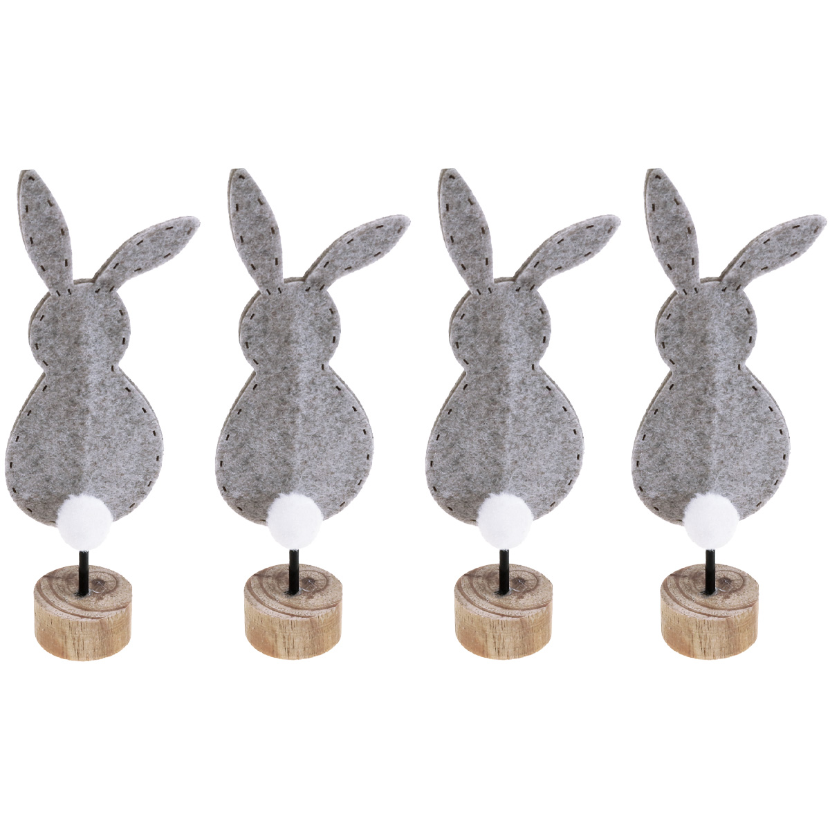 Állvány asztaldísz Húsvéti nyuszi dekoráció filc szürke 28,5cm 4 db