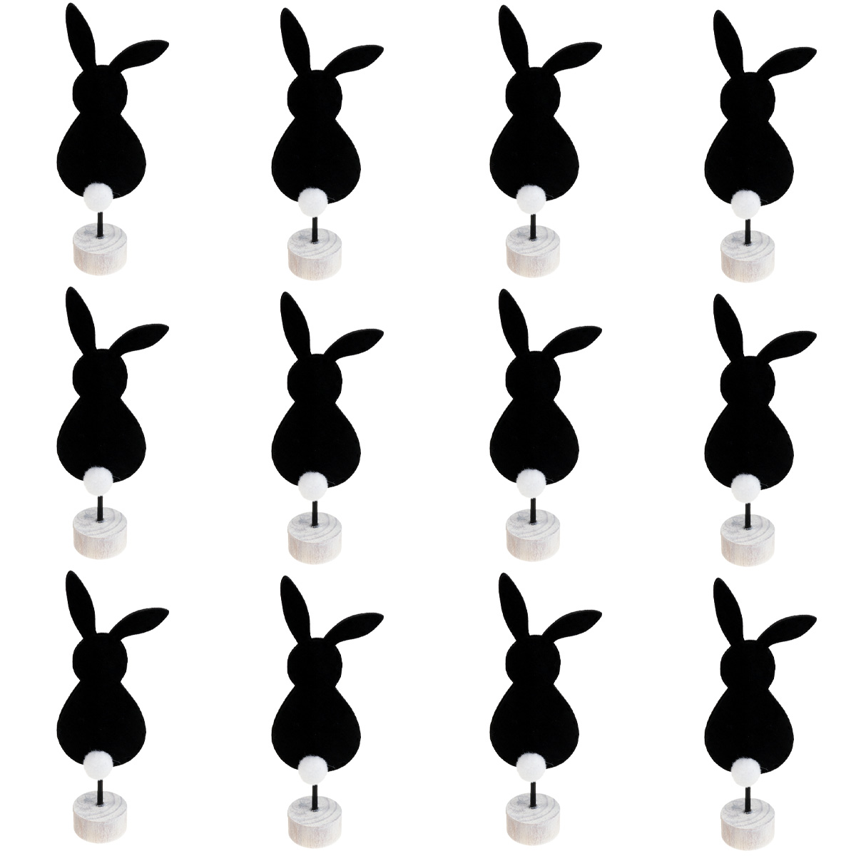 Termék neve: Állvány asztaldísz Húsvéti nyuszik nemez fekete 19cm 12db