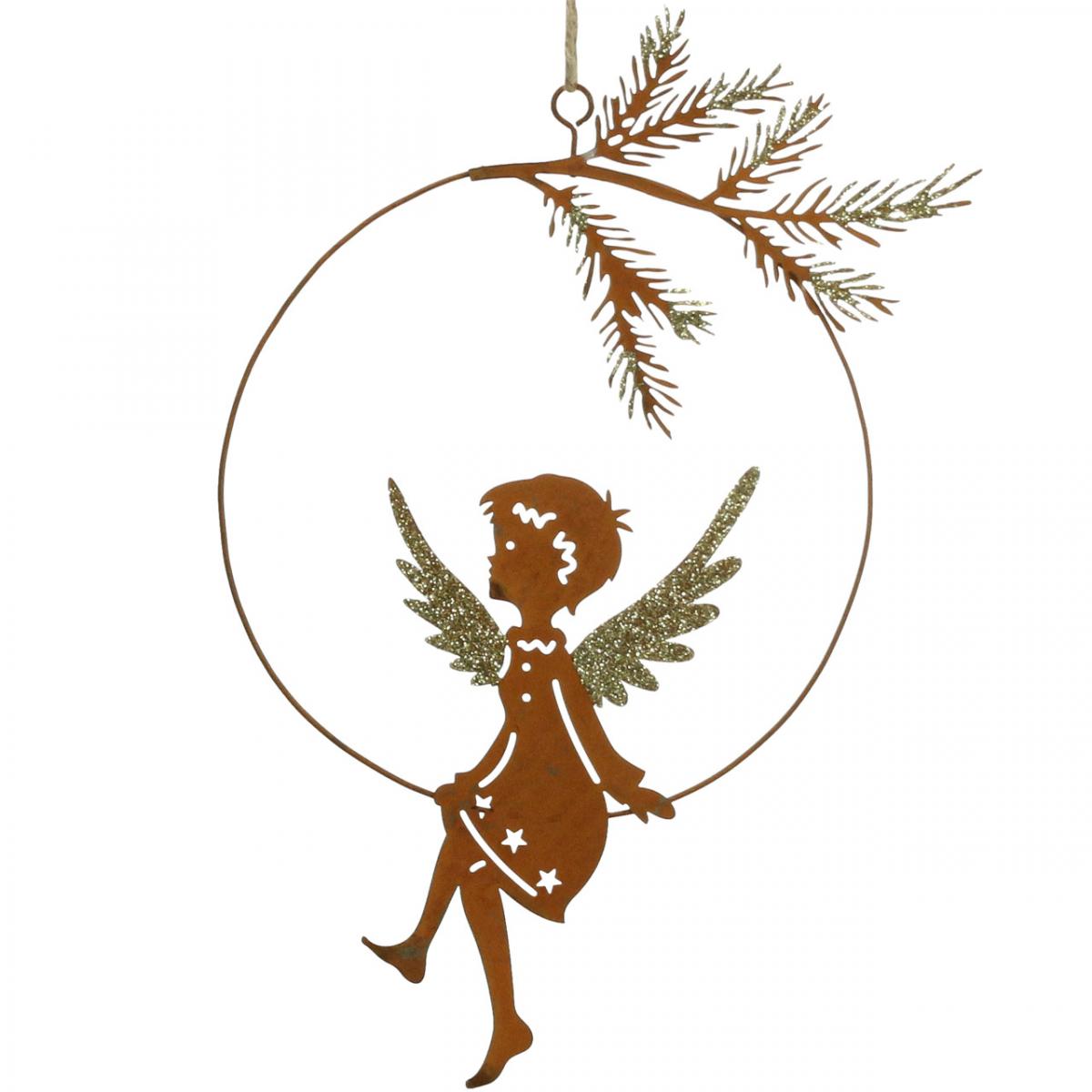 Termék neve: Angyal díszgyűrű fém rozsda karácsonyi dekoráció 23,5x16,5cm 3 db