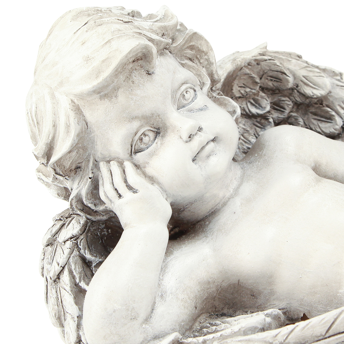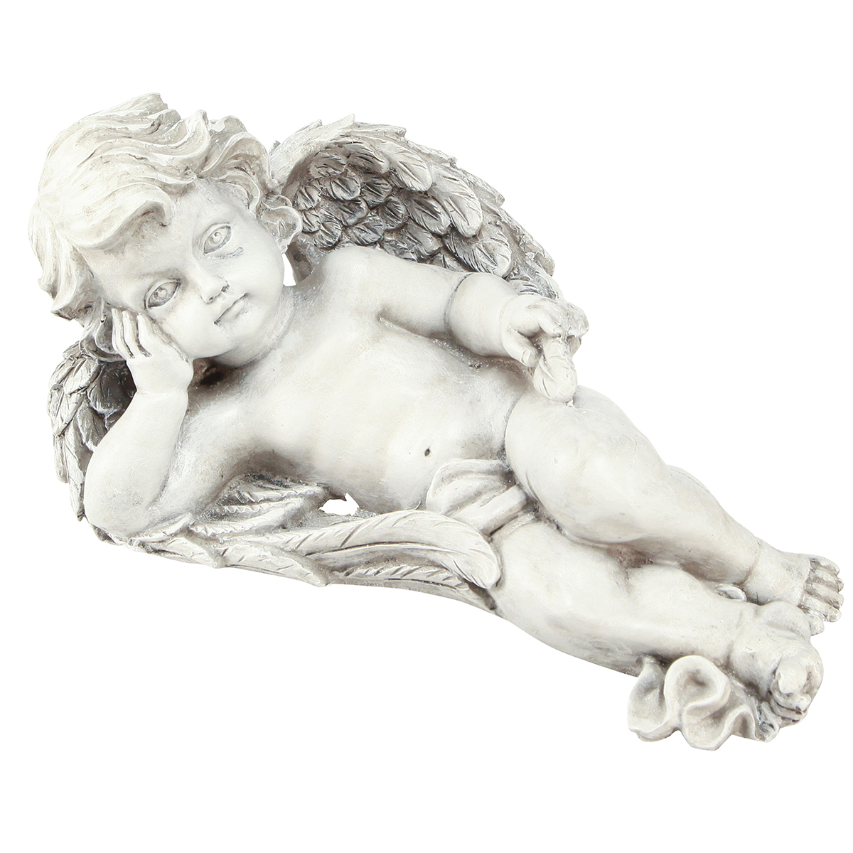 Angyal fekvő sírdísz polirezin szürke fehér 31×16cm