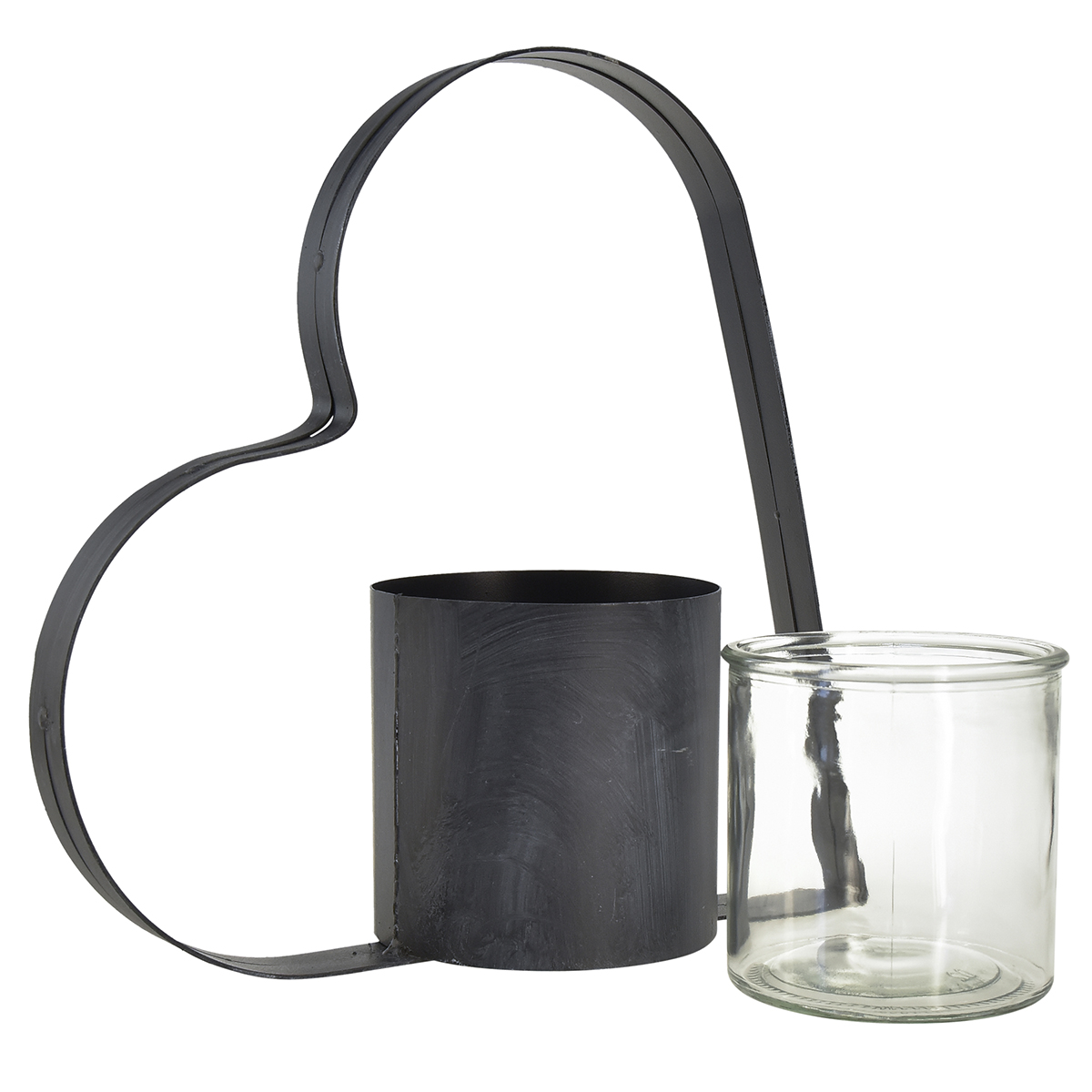 Antik szürke fém tartó szív alakú és üvegtartóval - 30 cm-es dekoráció a romantikus hangulatért 2 db