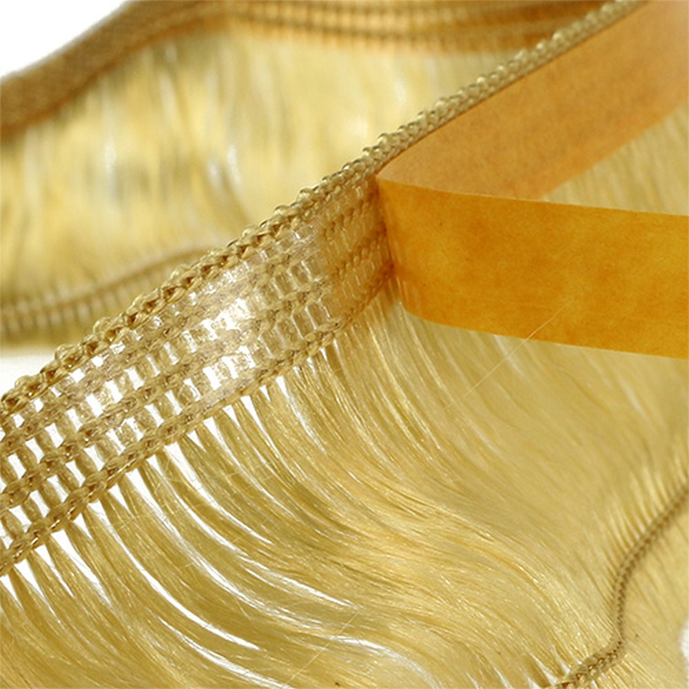 Az aranyszínű öntapadó rojtot összesen 25 méterig feltekerjük egy kartonlapra, és kis tűkre rögzítjük. A rojt szalag 40 milliméter körüli, míg maguk a rojtok 32 milliméter szélesek. Egy éles ollóval a kívánt hosszúságúra vághatja a szalagot.