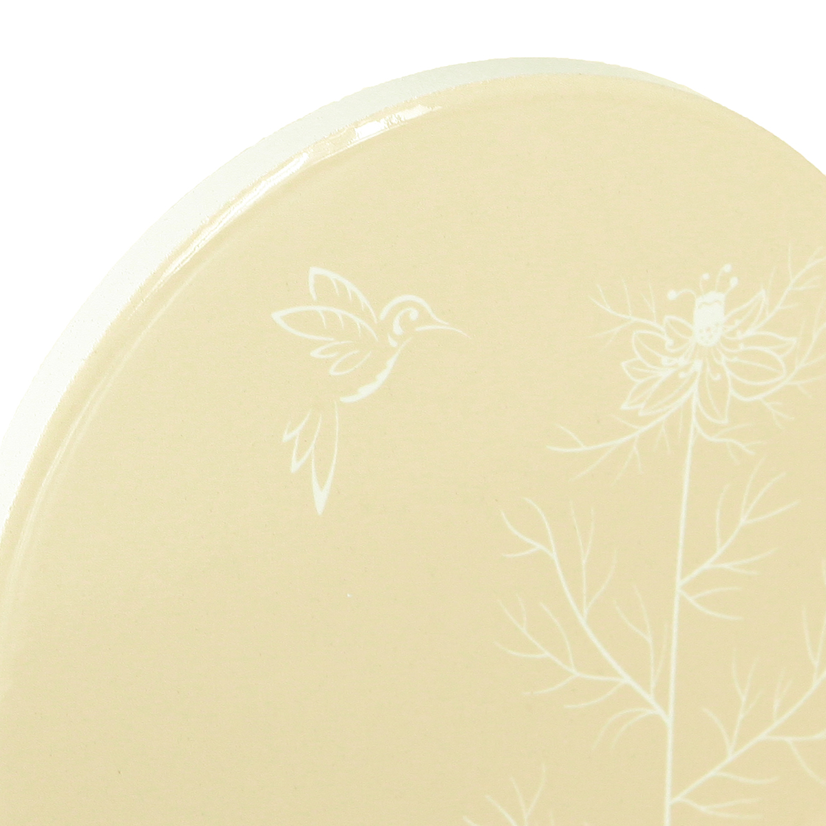 Adjon otthonának frissítő tavaszi hangulatot ezekkel a bájos asztali alátétekkel. Ezek a dekoratív tavaszi alátétek harmonikusan ötvözik a művészetet és a funkcionalitást, és tökéletes kiegészítői a tavaszi asztaldísznek. Az elegáns dizájn elbűvölő madár- és virágmotívumokkal közvetlenül az otthonába hozza a természet szépségét, és barátságos légkört teremt. A kerek asztali alátétek kiváló minőségű kerámiából készülnek, alul finom parafaréteggel, ami egyszerre stílusos és funkcionális.