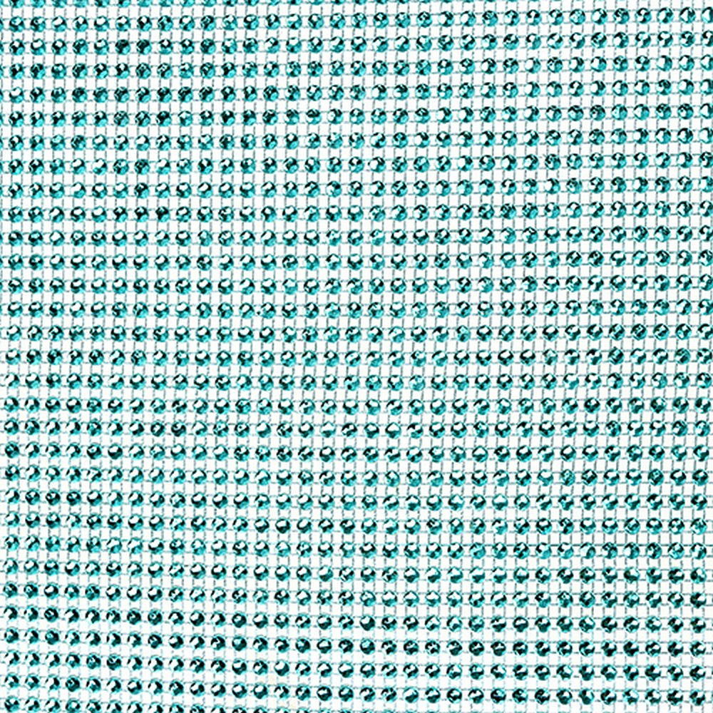 A türkiz flitterekkel ellátott asztali futófelület körülbelül 25 x 228 centiméter széles és tekercs hosszú. A csillogó kövek kiváló minőségű műanyagból készültek, és könnyen tisztíthatók is.