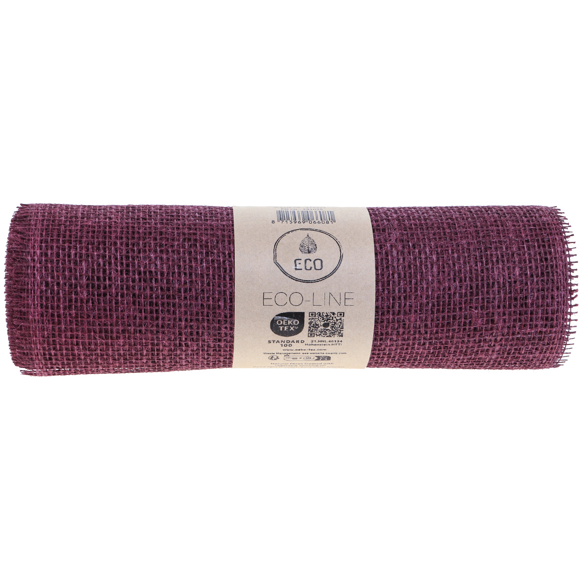 A borvörös jutaszalag 100%-ban természetes szálakból készült, és tisztán növényi olajokkal kezelték – a régi fonóhagyománynak megfelelően. Így nyeri el a juta az Oekotex 100 címkét, és teszi fenntarthatóvá dekorációját. Az asztalpánt durva szövésű. Ennek eredményeként az egyes szálak saját magukba kerülnek, és az alátét továbbra is látható.