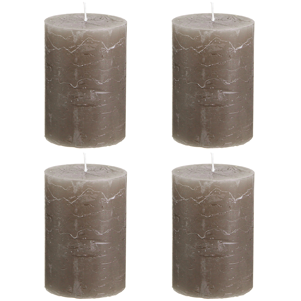 Termék neve: Barna oszlopgyertyák, egyszínű, 70x100 mm, 4 db-os készlet, rusztikus díszítéssel