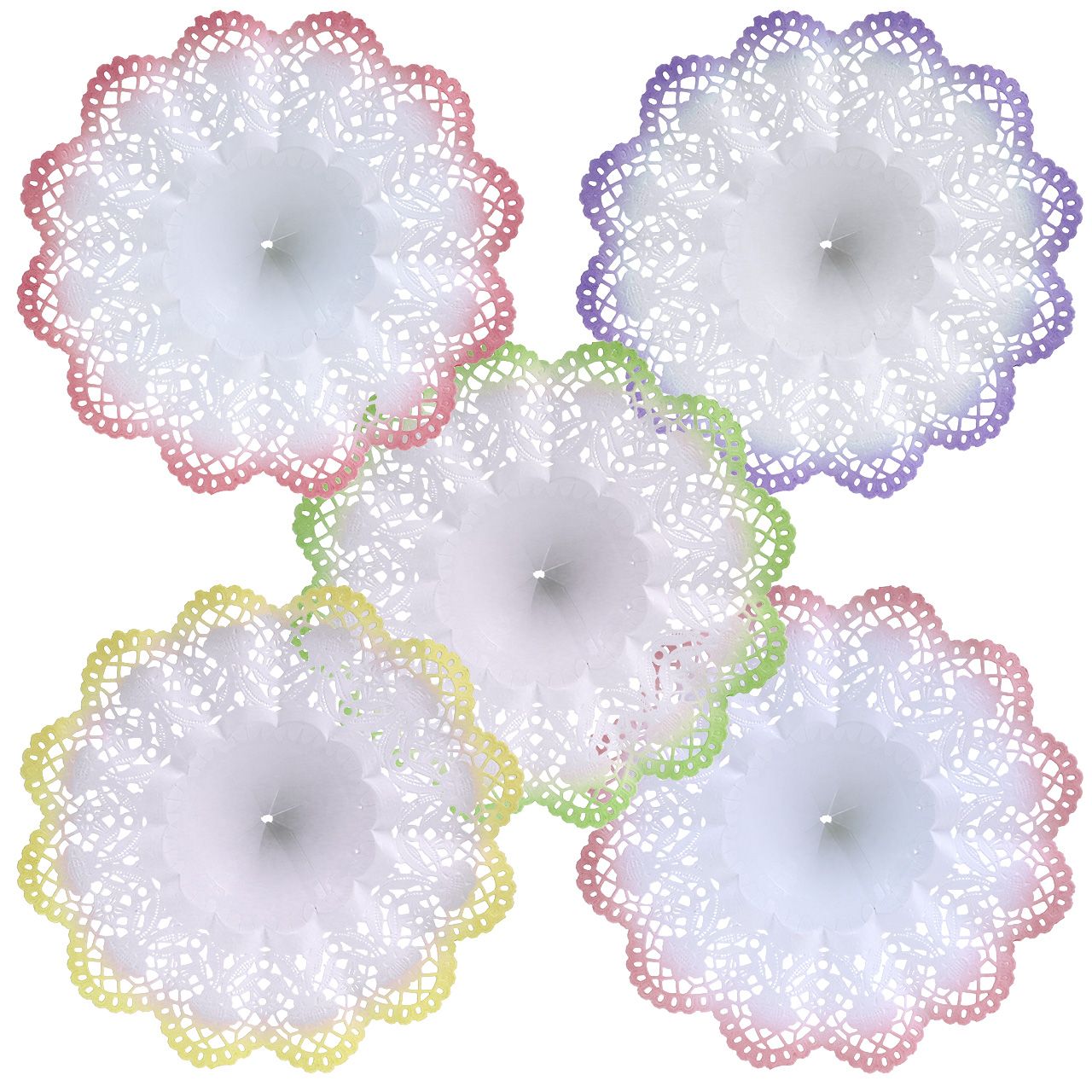 A 25 db batikolt biedermeiner mandzsetta készletet műanyag csomagolásban szállítjuk, mindegyik mandzsetta teljes átmérője körülbelül 27 centiméter. A nyílás átmérője körülbelül 12 centiméter.