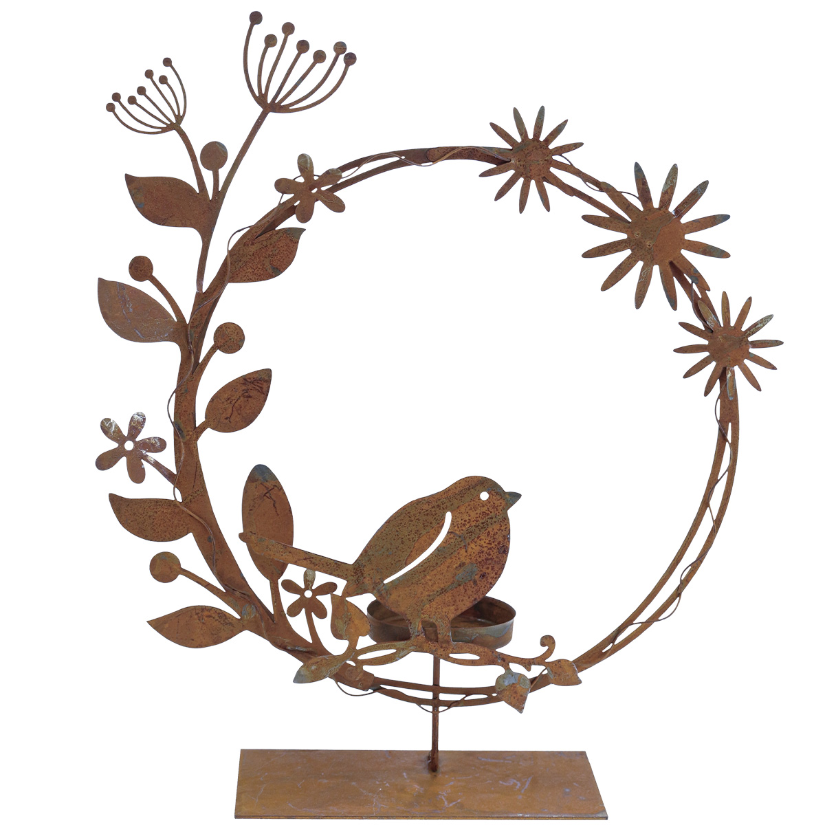 Termék neve: Bird deco virág teamécses tartó rozsda megjelenés 24×27×6cm