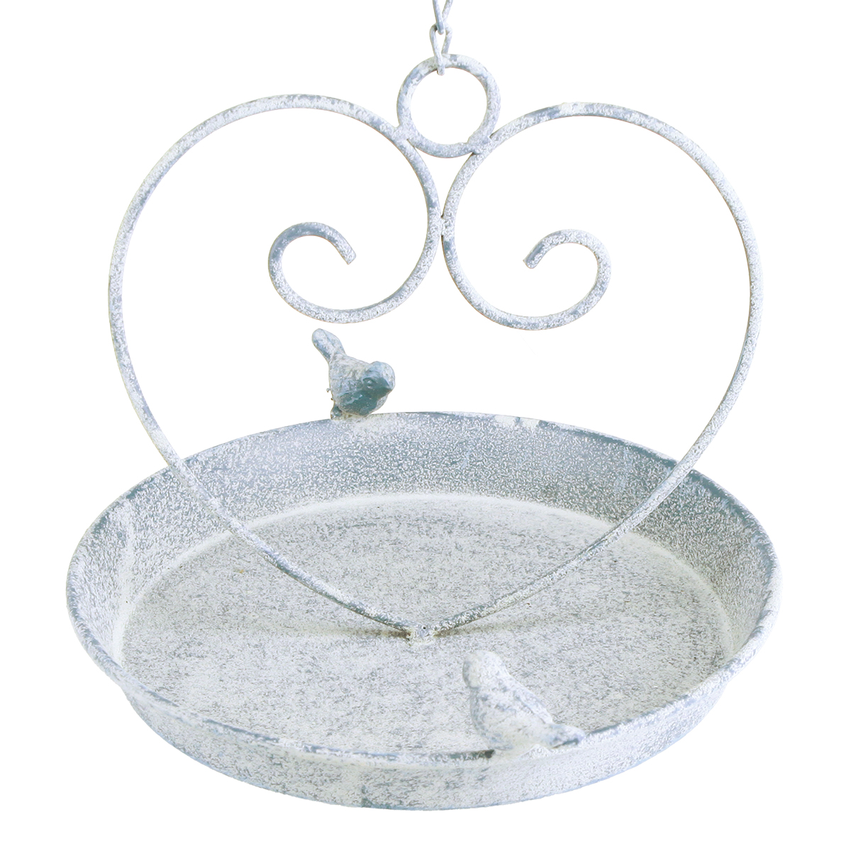 Függő fém madárfürdő: Bájos szívdísz fehér és kék színben