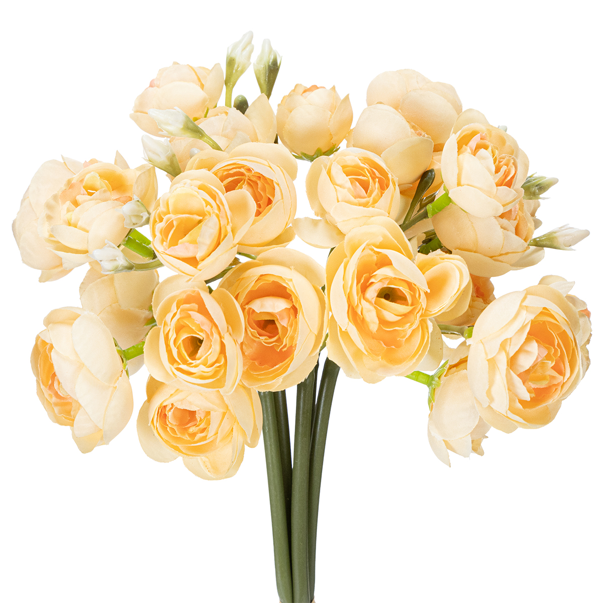 Mi tesz egy dekorációt igazán különlegessé? Gyakran a részletek, az apró, de annál különlegesebb részletek jelentik a különbséget. Pontosan itt jön képbe a mi boglárka virágágunk! 32 cm magas és friss, meleg narancssárga árnyalatú, tökéletes arra, hogy élénk hangulatot adjon a vázáknak. Akár a nappali asztalán, az előszobában, akár egy esküvői virágkompozíció bájos kiegészítőjeként áll, ez a dekoratív boglárka ág életet és stílust visz bármilyen dekorációba. Öt virágzó ág alkot tökéletesen harmonikus csokrot, amely ideális kisebb vázákhoz vagy nagyobb virágkompozíciókhoz. A kiváló minőségű anyagok, mint például a tartós poliészter és a műanyag, realisztikus megjelenést kölcsönöznek a virágoknak, amelyek gyakorlatilag megkülönböztethetetlenek az igazi boglárkától. Vannak már ötleteid, hogyan használhatnád? Engedd szabadjára a kreativitásodat, akár romantikus esküvői virágdíszekhez, akár színes tavaszi dekorációkhoz. Akár külön-külön, akár csoportosan állítod ki, ez a boglárka ág garantáltan igazi tekinteteket gyönyörködtető lesz!
