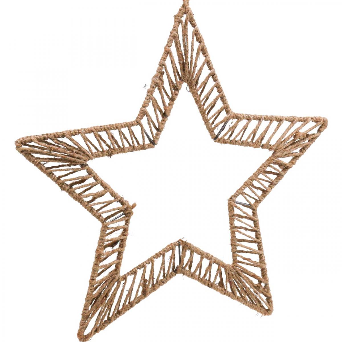 A díszgyűrű csillag alakú mélyedésének közepére is akaszthatunk valamit, vagy használhatjuk a natúr juta csillagot díszítetlenül, ahogy van.